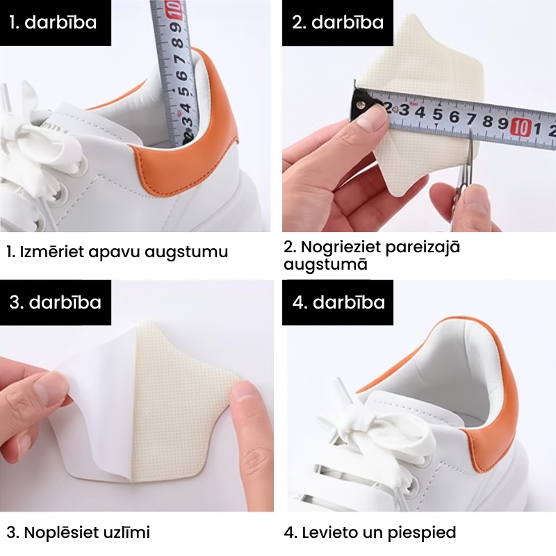 - Viegla lietošana: Pašlīmējošais dizains ļauj tos piestiprināt dažu sekunžu laikā – vienkārši noņem aizsargplēvi un pielīmē apavu iekšpusē.